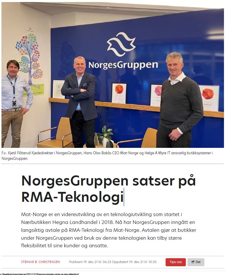 Liberty Now; KundeserviceAvisen; NorgesGruppen satser på RMA-Teknologi