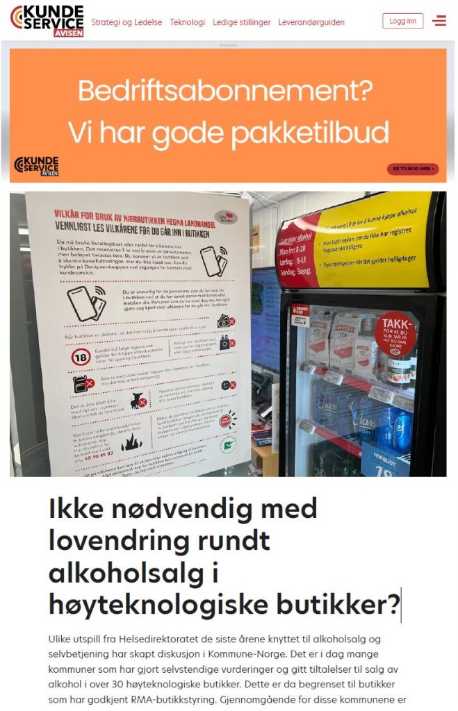 Liberty Now; KundeserviceAvisen; Ikke nødvendig med lovendring rundt alkoholsalg i høyteknologiske butikker?
