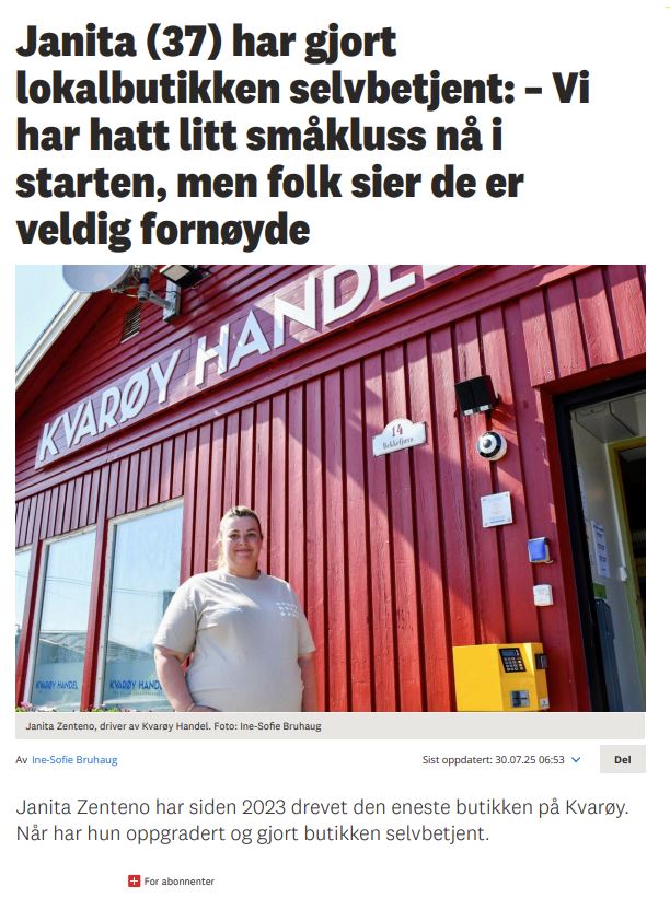 Kvarøy handel; Rana Blad; Janita (37) har gjort lokalbutikken selvbetjent: – Vi har hatt litt småkluss nå i starten, men folk sier de er veldig fornøyde