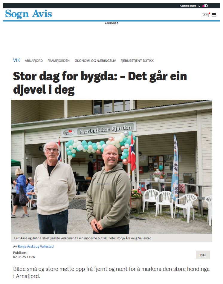 Nærbutikken Fjorden; Sogn Avis; Stor dag for bygda: – Det går ein djevel i deg