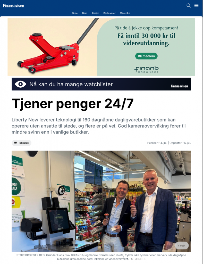 LibertyNow;Finansavisen;Tjener penger 24/7